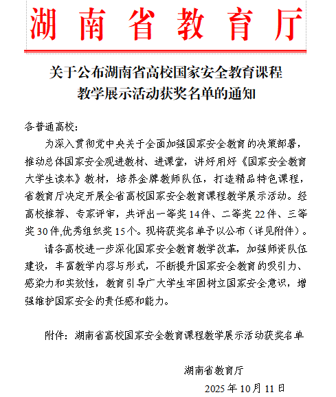 - 03-12 关于2026年青年教师教学竞赛院级决赛暨2026年湖南省高校青年教师教学竞赛选拔赛的结果公示
